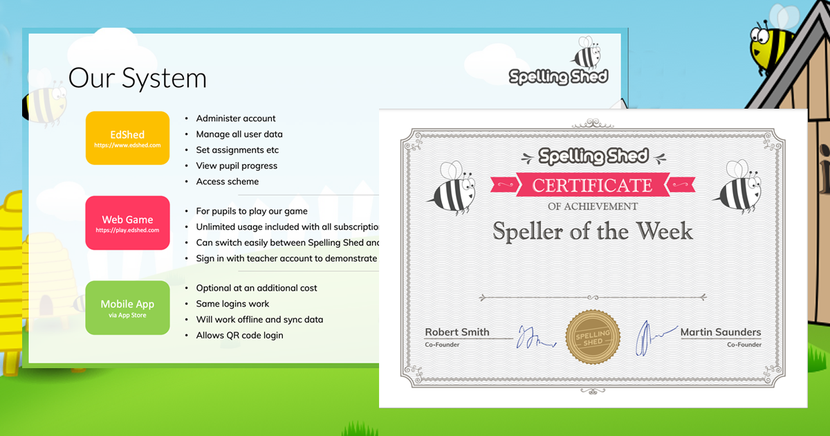 Spelling Shed is made by teachers, for teachers and was developed in the founder's classroom. We have built a suite of tools to enable teachers and schools to manage students' data, including reporting on assessments. Spelling Shed tracks student game plays along with their responses. Teachers can monitor weekly activity in order to advance or remediate as needed.